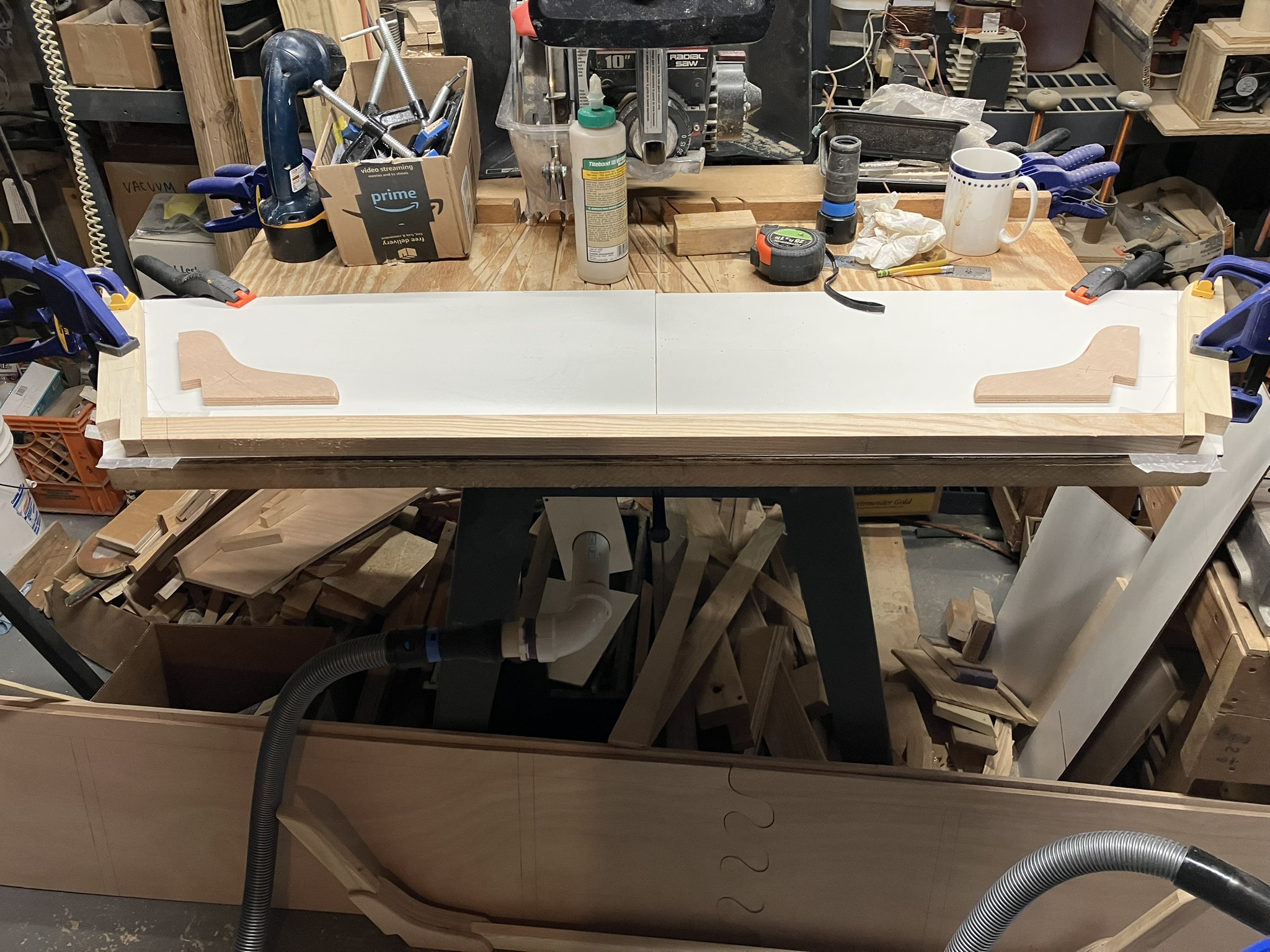 Curve was cut from a template and edges routed with 1/4" radius bit.